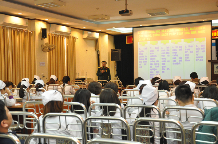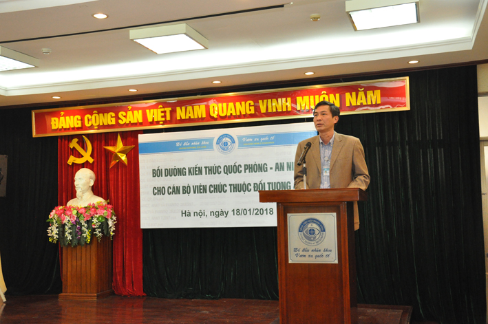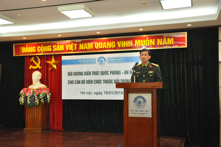 Phát biểu khai mạc lớp học, Ths Nguyễn Đức Thành nhấn mạnh mục đích vai trò của công tác giáo dục quốc phòng an ninh. Đây là công tác mang tính chiến lược lâu dài được Đảng, Nhà nước hết sức coi trọng, nhằm góp phần nâng cao nhận thức trách nhiệm cho cán bộ, Đảng viên nắm vững chủ trương đường lối về QPAN, nhận rõ âm mưu thủ đoạn của các thế lực thù địch. Ths Nguyễn Đức Thành cũng quán triệt yêu cầu của lớp học, đề nghị các học viên tham gia nghiêm túc, tích cực trao đổi thảo luận nâng cao nhận thức, rèn luyện bản lĩnh chính trị, từ đó thực hiện tốt hơn chức trách nhiệm vụ của mình. Thay mặt lãnh đạo BCHQS quận Hai Bà Trưng, trung tá Cao Minh Tuấn chúc mừng bệnh viện Mắt TW được Chính ủy Bộ Tư lệnh thủ đô Hà Nội tặng Danh hiệu Đơn vị Quyết thắng, cá nhân đ/c Nguyễn Đức Thành được tặng Danh hiệu Chiến sĩ thi đua cơ sở, biểu dương bệnh viện mặc dù cuối năm hết sức bận rộn vẫn nghiêm túc thực hiện kế hoạch GDQP cho CBVC. Đ/c Cao Minh Tuấn chúc khóa học thành công và mong rằng sau khóa học các học viên sẽ trở thành hạt nhân trong phong trào bảo vệ an ninh tổ quốc