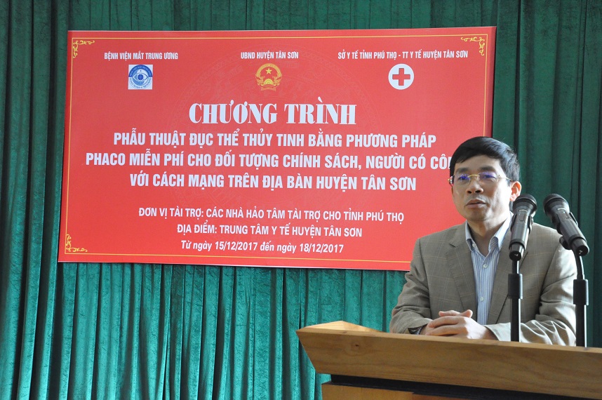Huyện Tân Sơn, tỉnh Phú Thọ là huyện miền núi và là một trong 62 huyện nghèo của của cả nước. Tân Sơn được tách ra từ huyện Thanh Sơn của tỉnh Phú Thọ năm 2007. Tuy nhiên do đặc điểm địa lý chủ yếu là đồi núi, 83% dân cư là người thiểu số với các dân tộc: Mường, Dao, H'Mông, Thái, La Chí, Tày, Nùng...nên việc chăm sóc mắt còn rất hạn chế, vẫn còn nhiều người mắc các bệnh về mắt trong đó có đục thể thủy tinh- nguyên mù lòa số một tại Việt Nam. Với mong muốn mang những ứng dụng khoa học kỹ thuật tiên tiến nhất của ngành Nhãn khoa tới các vùng sâu, vùng xa, thực hiện bổn phận của ngành là giải phóng mù lòa đem lại ánh sáng cho người dân, Bệnh viện Mắt Trung ương đã phối hợp với các cấp chính quyền địa phương đã đưa xe mổ lưu động đến tận nơi, phục vụ bà con Tân Sơn từ ngày 15 đến 18 tháng 12 năm 2017. Nguồn kinh phí do các nhà hảo tâm tài trợ cho tỉnh Phú Thọ.
