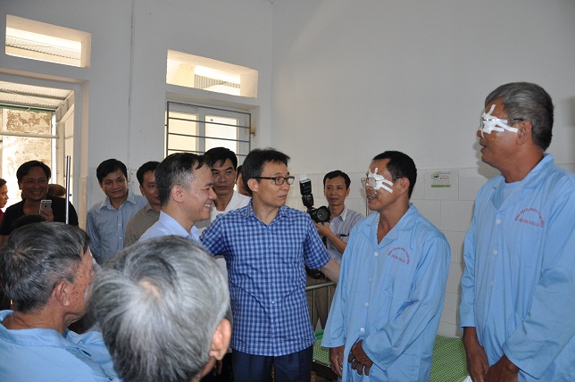 Đồng chí Phó Thủ tướng Chính phủ Vũ Đức Đam thăm, tặng quà người cao tuổi khám phẫu thuật mắt miễn phí tại Bệnh viện Đa khoa huyện Thanh Miện