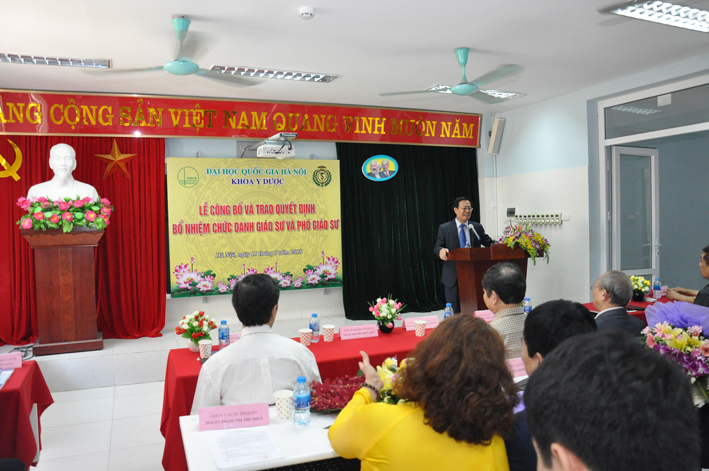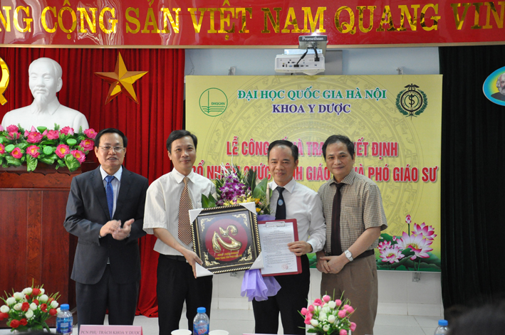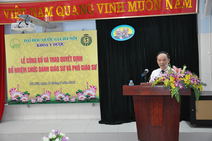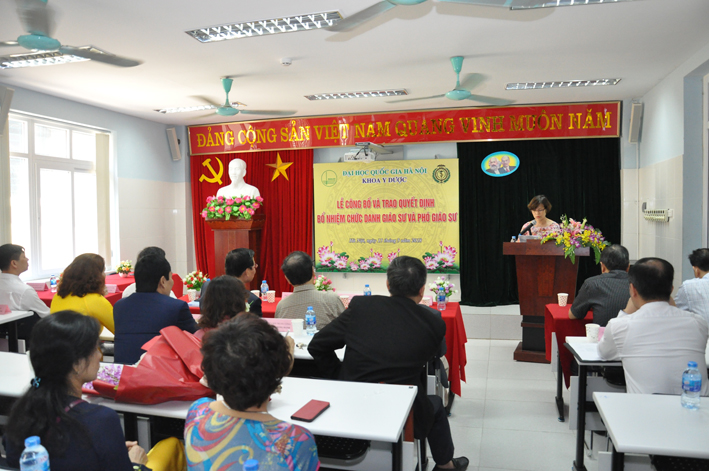 GS.TS. Nguyễn Hữu Đức thay mặt Ban Giám đốc Đại học Quốc gia Hà Nội đã trao Quyết định bổ nhiệm cho các tân Phó giáo sư, chúc mừng và cảm ơn các tân Phó giáo sư đã giành nhiều tâm huyết, đóng góp cho sự phát triển không ngừng của Khoa Y Dược. Dù mới chỉ thành lập được 8 năm, nhưng với đội ngũ các nhà giáo như hiện nay chất lượng đào tạo của khoa đủ sức cạnh tranh với các trường Y dược trên địa bàn Hà Nội. Năm 2017 điểm chuẩn đầu vào của Khoa đã lọt vào tốp 4 khối Y dược.