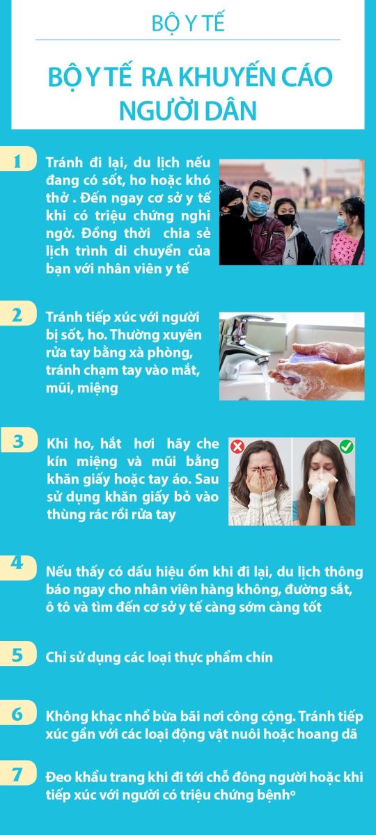 Trước tình hình dịch bệnh viêm đường hô hấp cấp do virus nCoV diễn biến phức tạp, Bộ Y tế đã liên tục đưa ra các khuyến cáo đến người dân để tự bảo vệ sức khoẻ của mình.