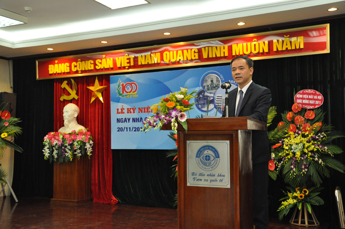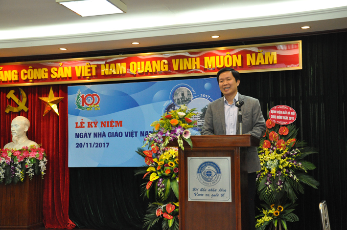 Phát biểu tại buổi lễ TS.BS. Nguyễn Xuân Hiệp – Giám đốc Bệnh viện nhấn mạnh lễ kỷ niệm ngày Nhà giáo Việt Nam lần này có ý nghĩa đặc biệt gắn liền với các sự kiện trọng đại của ngành mắt và của bệnh viện, đây cũng là lần đầu tiên do Bệnh viện chủ trì tổ chức bởi vì bệnh viện với Trung tâm Đào tạo – Chỉ đạo tuyến là đối tác của nhiều cơ sở đào tạo nhãn khoa trong cả nước. Trong năm 2017 Trung tâm Đào tạo – Chỉ đạo tuyến đã thực hiện nhiều nhiệm vụ, tổ chức nhiều lớp học cho nhiều đối tượng học viên. Trung tâm dần trở thành cơ sở đào tạo uy tín trong ngành. TS.BS. Nguyễn Xuân Hiệp cũng bày tỏ sự cảm ơn và mong muốn tiếp tục hợp tác với các đối tác truyền thống, đồng thời mở rộng hợp tác với các đơn vị khác như Bệnh viện quân y 103, ĐH Y Thái Bình, ĐH Y Hải Phòng, với các trung tâm đào tạo trong khu vực và thế giới: SNEC (Singapore), Prasat (Ấn Độ), Thammasat (Thái Lan) Juntendo (Nhật Bản). Trong thời gian tới Bệnh viện sẽ phối hợp với các hãng dược trang thiết bị y tế mở thêm các khóa đào tạo mời giảng viên nước ngoài có uy tín tới giảng dạy. Bệnh viện sẽ sắp xếp tạo mọi điều kiện cho công tác đào tạo: nâng cao cơ sở vật chất, hội trường, phòng nội trú, trang bị thêm tài liệu, wetlab, phòng tiền lâm sàng để học viên có thêm nhiều cơ hội thực hành.
