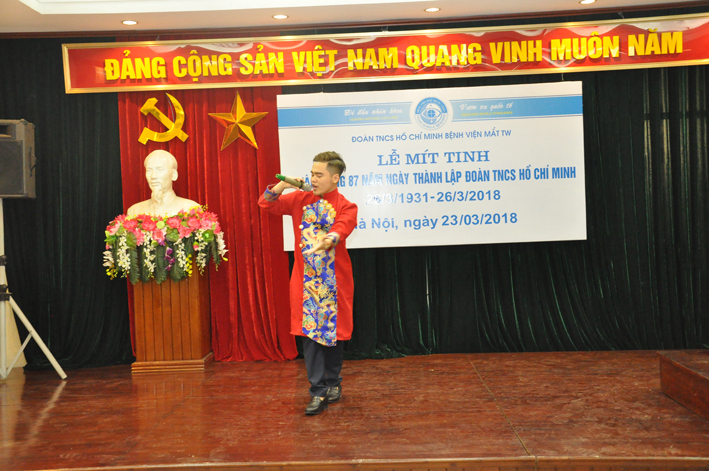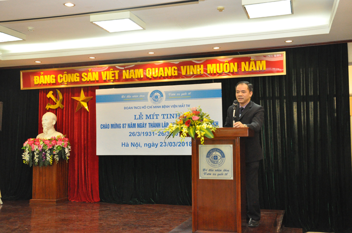 Đoàn viên thanh niên Bệnh viện Mắt TW cần phải làm bật vai trò tập hợp, tổ chức tốt phong trào thanh niên của mình, là lực lượng xung kích trong công tác nghiên cứu khoa học, hoạt động chuyên môn và giao tiếp ứng xử với người bệnh... Đó là ý kiến chỉ đạo của PGS.TS Nguyễn Xuân Hiệp, Bí thư Đảng ủy, Giám đốc Bệnh viện Mắt TW tại Lễ mít – tinh kỷ niệm 87 năm Ngày thành lập Đoàn TNCS HCM (26/3/1931-26/3/2018) và hưởng ứng tháng thanh niên 2018 của Bệnh viện Mắt TW tổ chức hôm 23/3/2018. Tới dự lễ mít -tinh  trang trọng này còn có các đồng chí trong Ban giám đốc và Đảng ủy: PGS.TS Cung Hồng Sơn, TS Phạm Ngọc Đông...cùng đại diện cho hơn 200 đoàn viên thanh niên Bệnh viện tham dự.