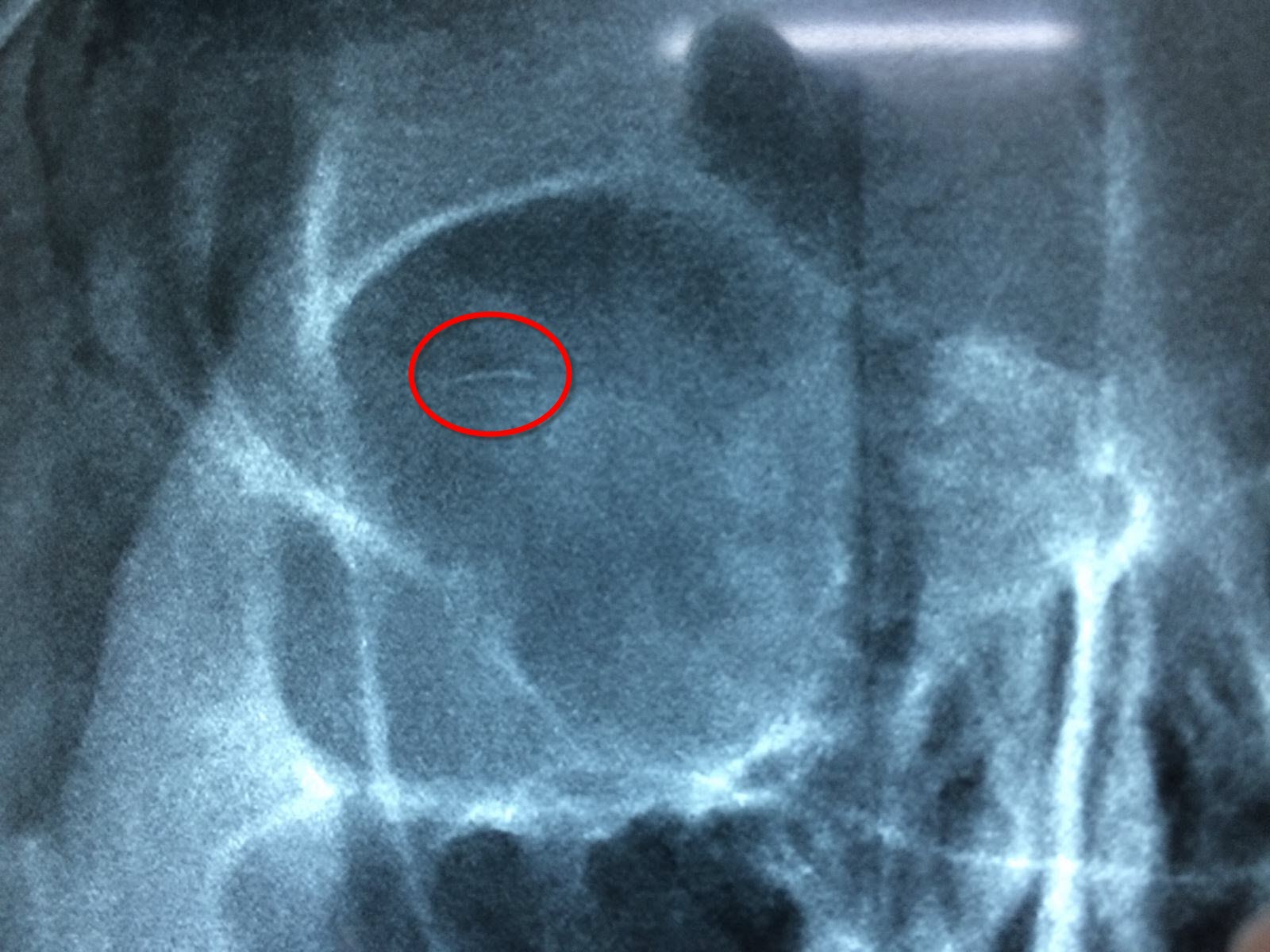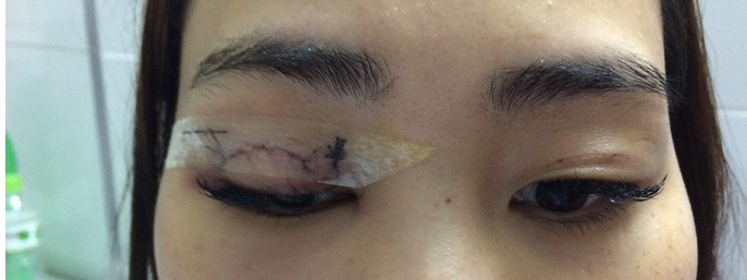 BN Vũ Thị L.24 tuổi khá xinh nhưng vẫn muốn xinh hơn vào khoa Chấn thương ngày 23/4/2018 vì đang tạo hình mí ở cơ sở làm đẹp thì bị mất kim, tua trực mặc dù đã phẫu thuật ngay nhưng vẫn không tìm được kim. Phim X- quang phải quan sát kỹ lắm mới thấy được lờ mờ cây kim dài khoảng 5mm, đường kính khoảng 0,2 mm to đúng bằng chiếc lông mi nằm ở 1/3 trên ngoài hốc mắt, song song với cùng đồ kết mạc. Kim thường dẻo, di động tốt có thể làm sát thương cho nhãn cầu, chế bằng hợp kim nên bắt nam châm rất kém, đã mổ một lần…làm tôi ngao ngán. Tua lại trong đầu những hình ảnh và clip kỹ thuật khâu chìm, không có đường rạch của xu hướng tạo nếp mí phổ biến ở các nước châu Á…Tôi dự đoán kim thường bị mắc lại ở 1/3 trên sụn hay trong khoang giữa kết mạc, sụn và cơ Muller- vốn rất chật hẹp. Mở lại đường mổ cũ, máu đã khô, thám sát bằng tay- mắt không thấy kim đâu. Miết khẽ ở bờ trên sụn và túi cùng kết mạc mi trên chỉ thấy hơn lợn gợn ở 1/3 ngoài. Dùng chỉ mi và vành mi đơn để nhìn rõ toàn bộ cùng đồ kết mạc, kíp mổ mừng rơn khi nhìn thấy cây kim lấp ló. Lấy kim, chụp ảnh và đóng lại vết mổ cũ thôi! Chúng tôi đã có thêm kinh nghiệm quí báu để xử lý những tai biến loại này.