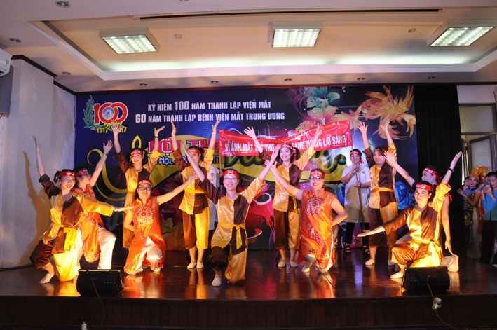 Và chiều ngày 23/6/2017 BCH Công đoàn bệnh viện đã tổ chức Hội thi văn nghệ hết sức sôi nổi và hấp dẫn,thu hút được sự tham gia nhiệt tình của tất cả các khoa phòng trong bệnh viện. Với chủ đề ca ngợi tình yêu quê hương, đất nước, ca ngợi ngành y  tế, 23 tiết mục hát múa đặc sắc đã đem lại nhiều cung bậc cảm xúc cho khán giả. Nhiều tiết mục được dàn dựng công phu, đầu tư biên đạo, trang phục, và được trình diễn hết sức chuyên nghiệp. Kết quả giải Nhất múa thuộc về khoa Mắt trẻ em, Nhất đơn ca thuộc về phòng QLKH-Đào tạo, Nhất tốp ca thuộc về khoa Gây mê hồi sức, Nhất hợp ca thuộc về khoa Khám chữa bệnh theo yêu cầu.