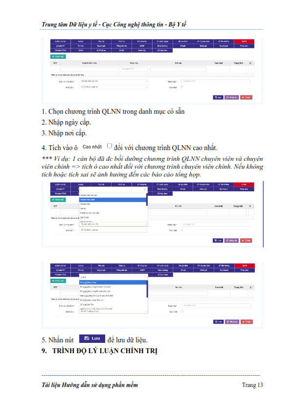 Tài liệu này đuợc xây dựng nhằm mục đích cung cấp những huớng dẫn cần thiết để nguời dùng có thể sử dụng phần mềm Quản lý cán bộ, công chức, viên chức ngành y tế.