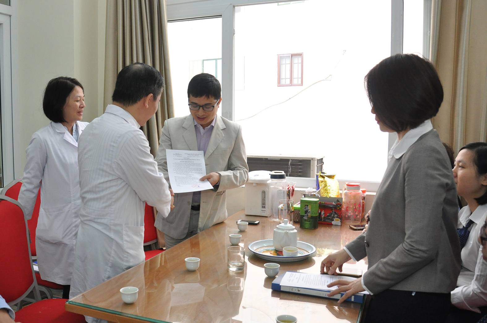 Hình ảnh Giám đốc giới thiệu và trao nhiệm vụ trong giao ban toàn khoa đối với BS Nguyễn Kiên Trung