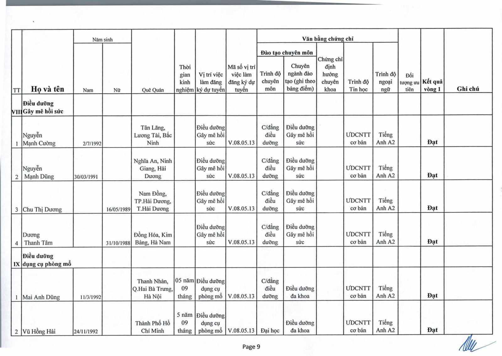 Thông báo : Kết quả trúng tuyển Nhân viên tiếp đón thuộc Phòng Công Tác Xã Hội