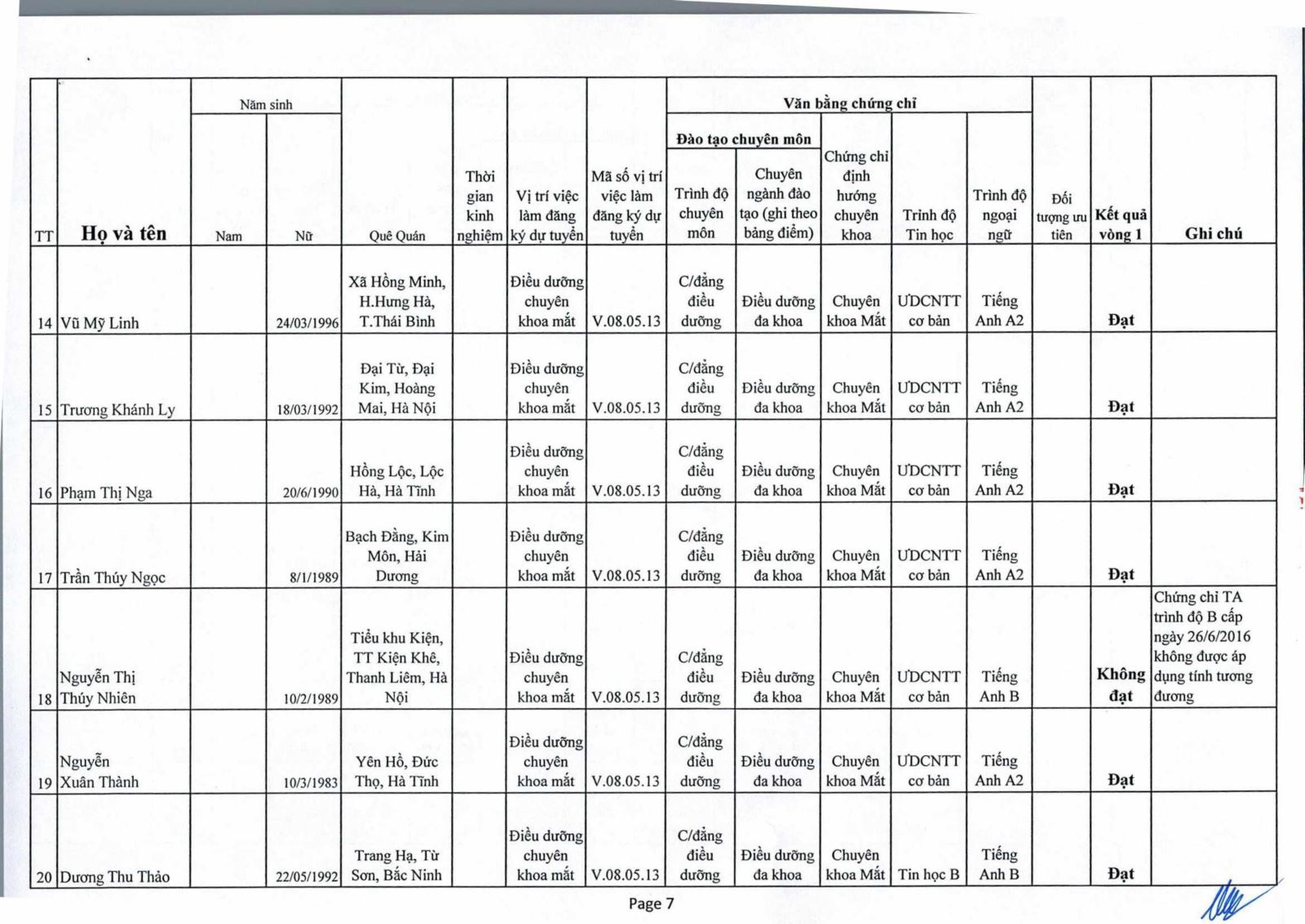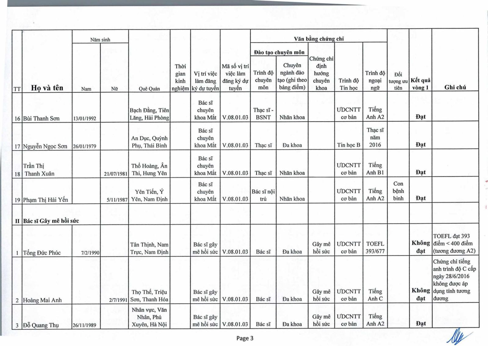 Kết quả kiểm tra phiếu đăng ký dự xét tuyển viên chức năm 2020 của Bệnh viện Mắt Trung ương